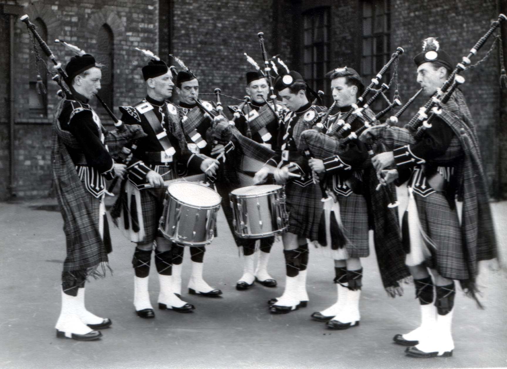 St Sebastian's Pipe Band in 1958. First time out. The tartan is MacBean, the same tartan worn today by its successor, Greater Manchester County Fire Service Pipe Band.